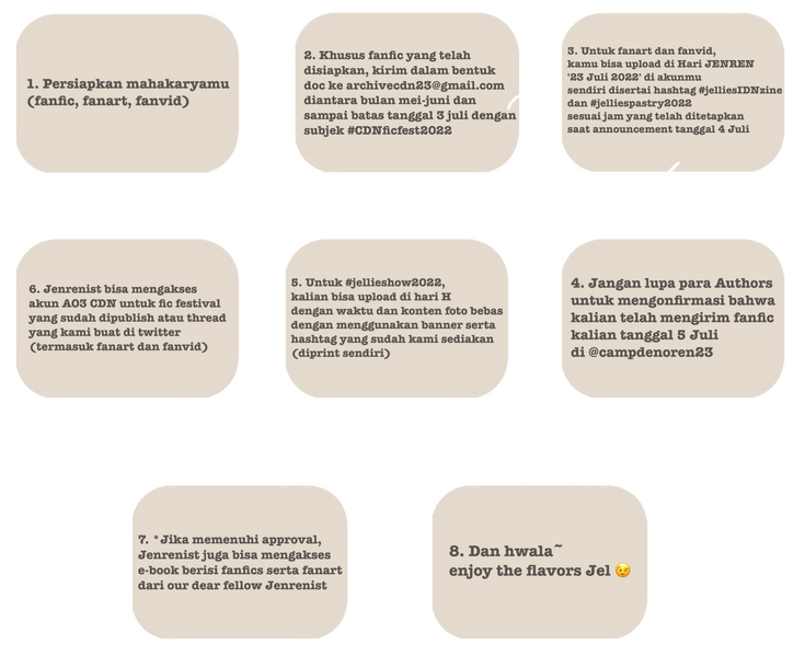 A: Konten seperti cake photo, merch jenren, atau bahkan cukup dengan diri kamu sebagai selca day juga bisa. Pokoknya yang berhubungan dengan Jenren dan dirimu.Q: Apakah wajib memakai banner dari CDN?